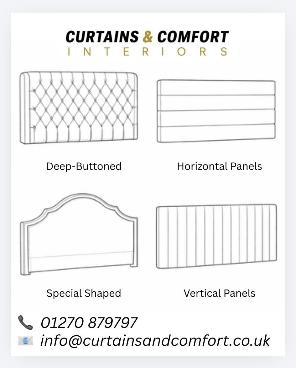 We offer a carefully curated selection of designs, including deep buttoned headboards, panel headboards, and special shaped headboards, all expertly upholstered using premium materials.