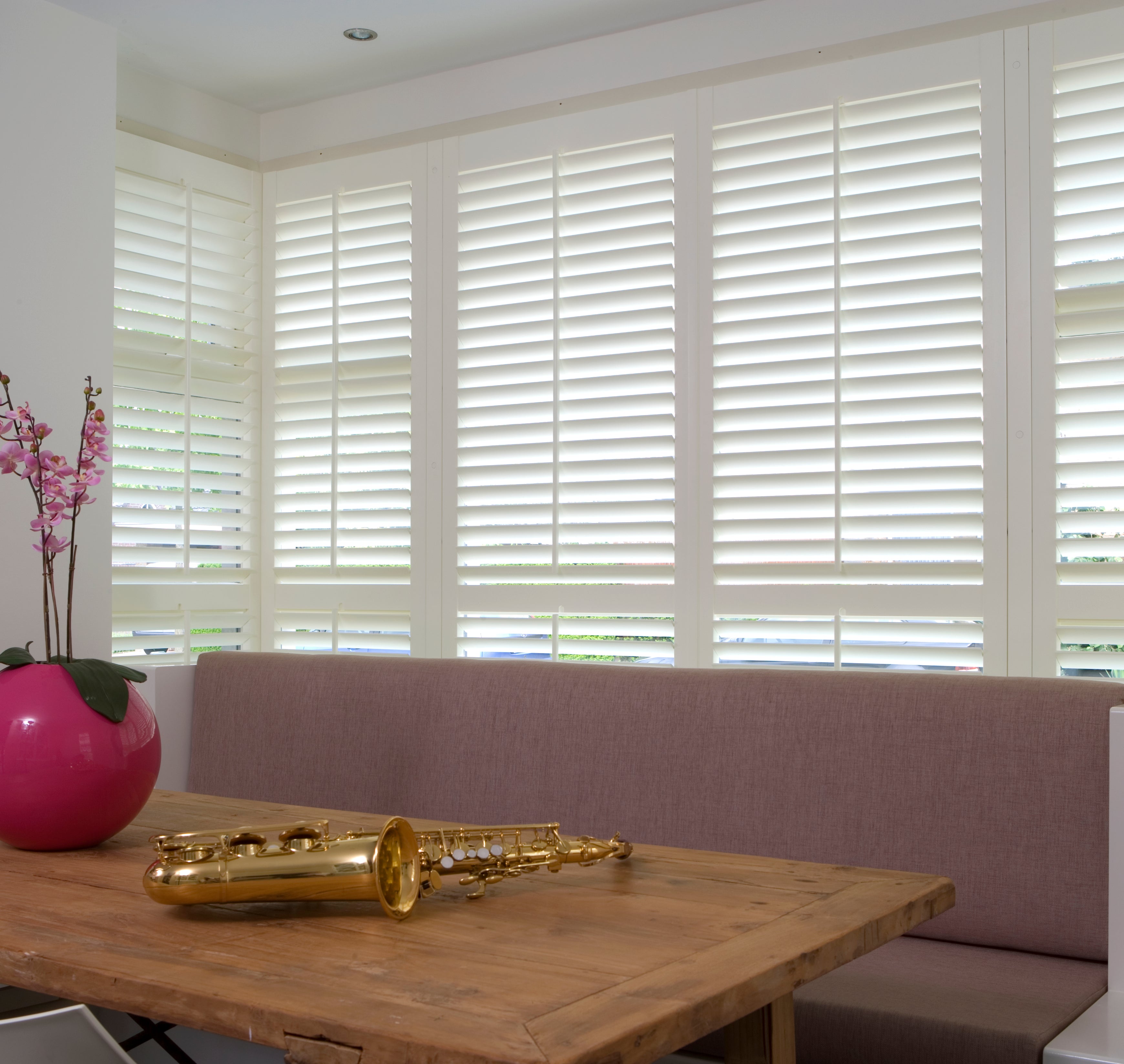 Adjust the louvers to precisely control natural light entering your bay windows, giving perfect light control for any time of day or season.